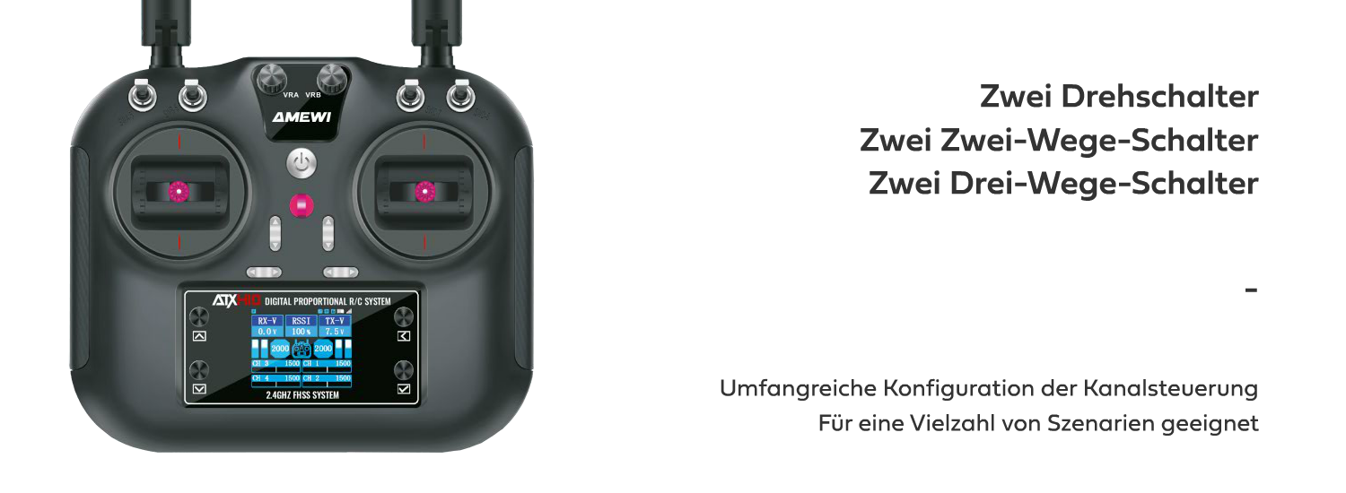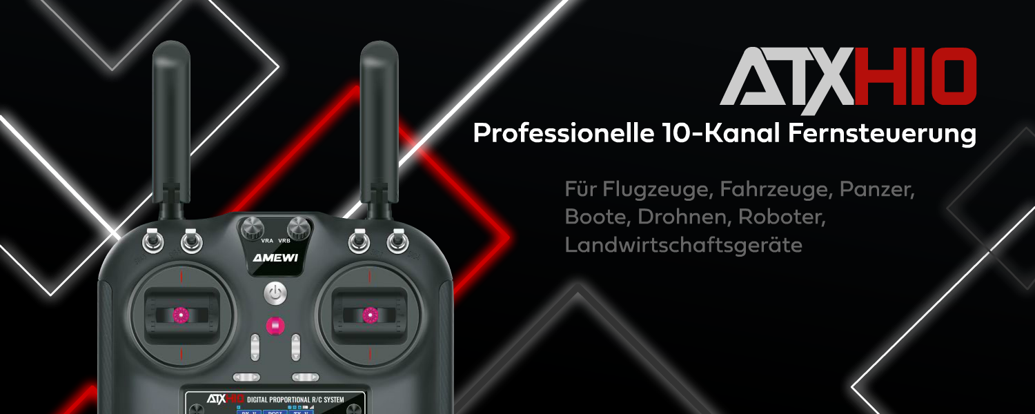 Die ATXH10 ist die ideale Wahl für Modellbau-Enthusiasten, die Wert auf Präzision, Vielseitigkeit und Zuverlässigkeit lege: Mit ihren 10 Kanälen bietet sie ausreichend Steuerungsmöglichkeiten für komplexe RC-Modelle wie Flugzeuge, Multicopter, Autos, Boote oder Panzer. Dank der FHSS-Frequenzsprungtechnologie arbeitet die ATXH10 störungsfrei und gewährleistet eine stabile Signalübertragung selbst in anspruchsvollen Umgebungen.