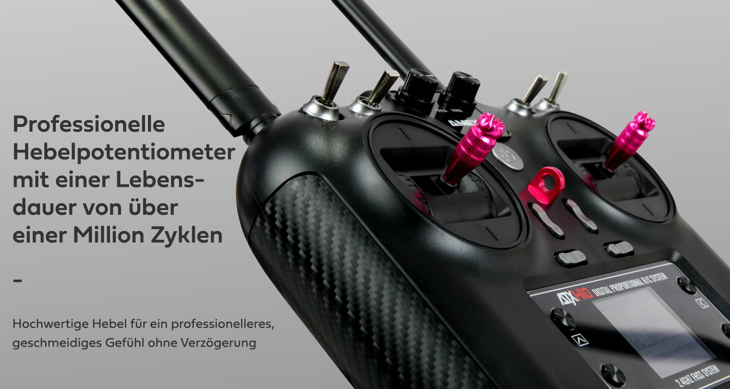 Auch in puncto Ergonomie und Bedienkomfort setzt die ATXH10 Maßstäbe. Zwei präzise Steuerknüppel, mehrere Schalter und Drehregler ermöglichen eine individuelle Anpassung an Ihre Bedürfnisse. Die langlebigen Potentiometer sind für bis zu eine Million Zyklen ausgelegt und garantieren eine lange Lebensdauer.