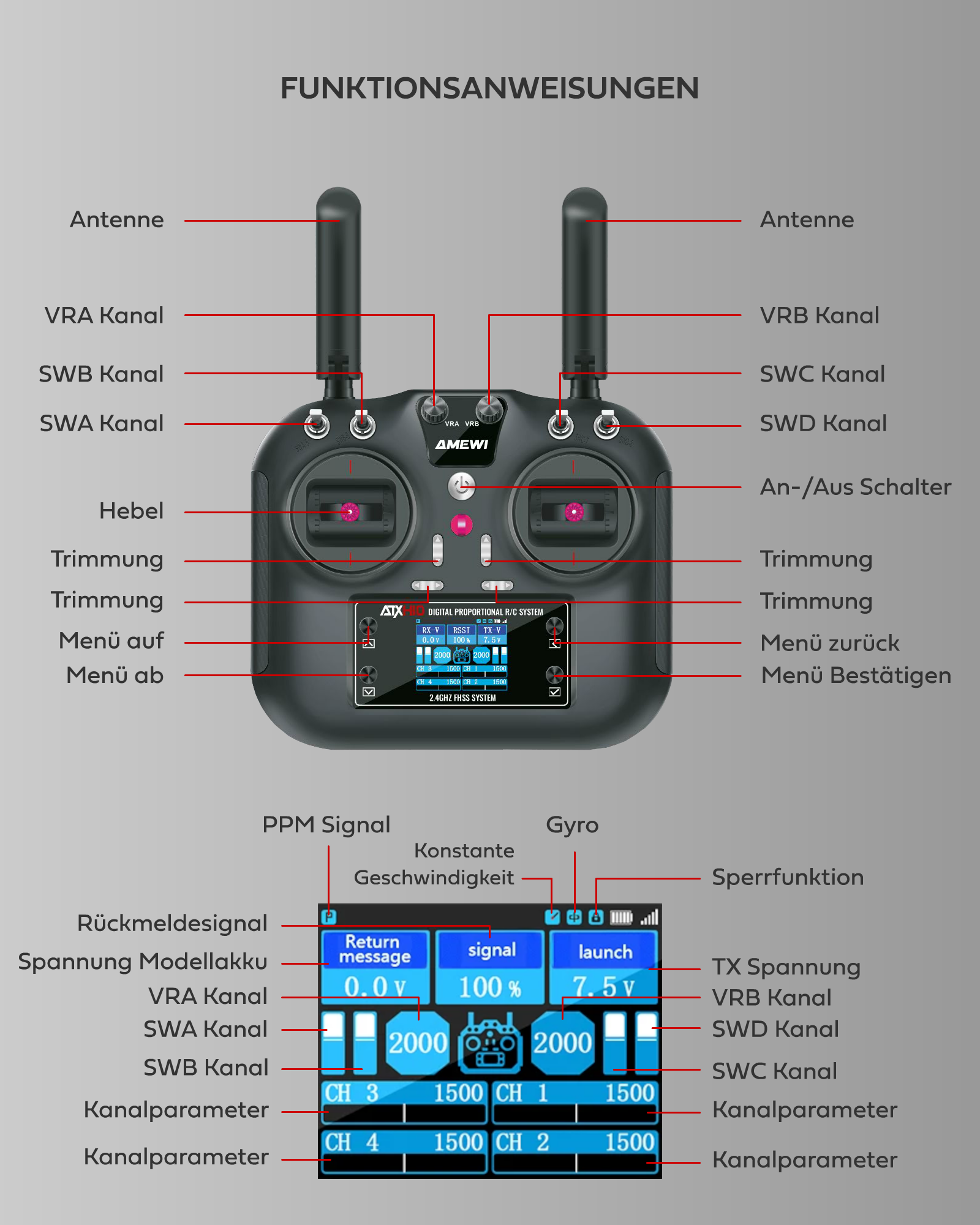 Feedback-Funktion: Überträgt Akkuspannung und Signalstatus des Empfängers